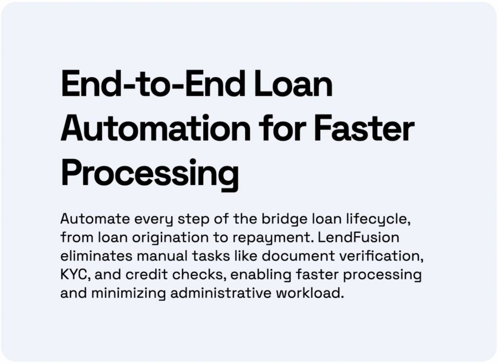 | End-to-End Automation | Automates the full lending workflow | Reduces manual work and speeds up decision times |