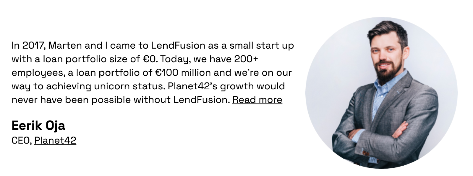 Planet42, one of LendFusion’s longest-standing customers, grew from a 0 loan portfolio to 100 million – and 200+ employees – without rebuilding their back office. The platform they started on scaled with them.