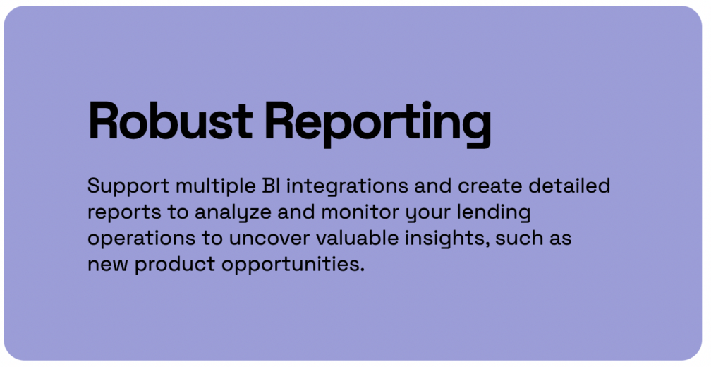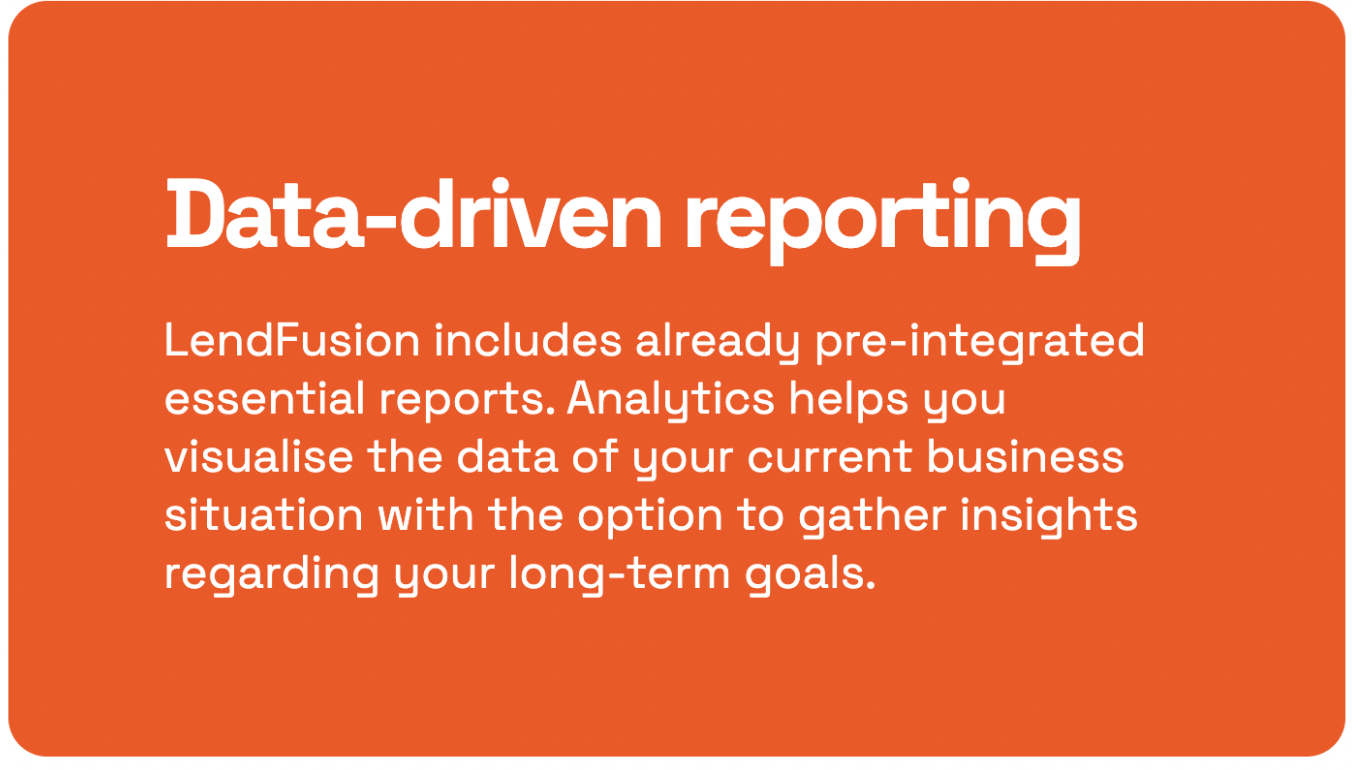 With robust reporting tools at your fingertips, you can distill vast amounts of data into meaningful insights, enabling data-driven decision-making for lenders to tailor their approaches and refine their lending business practices.